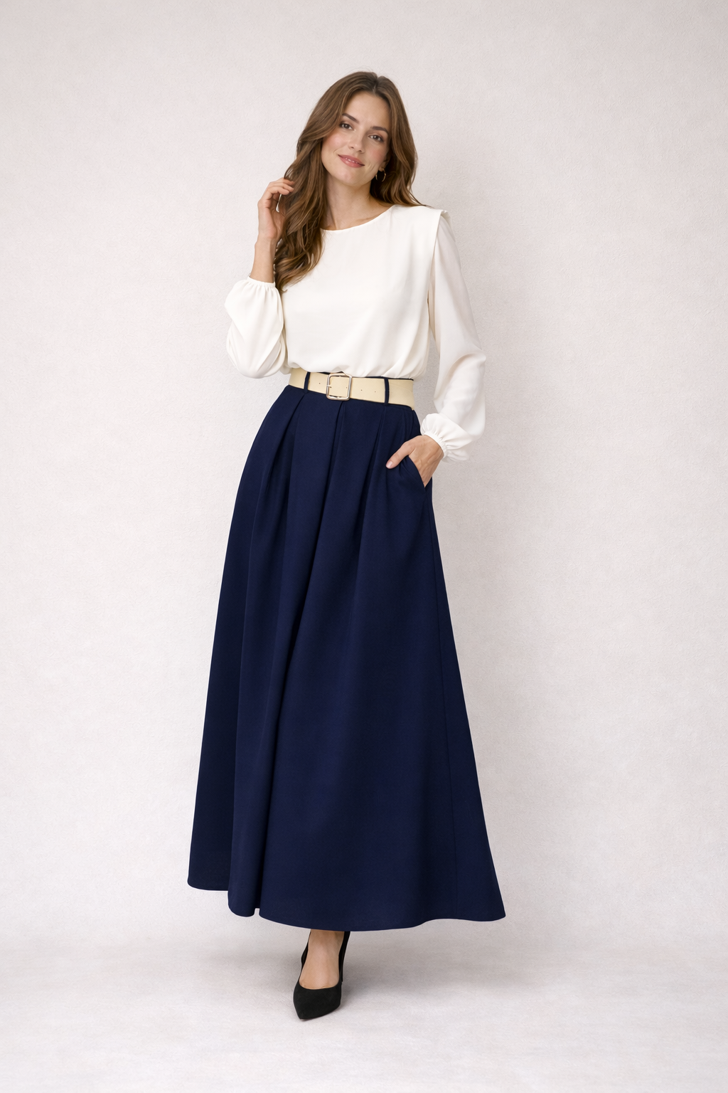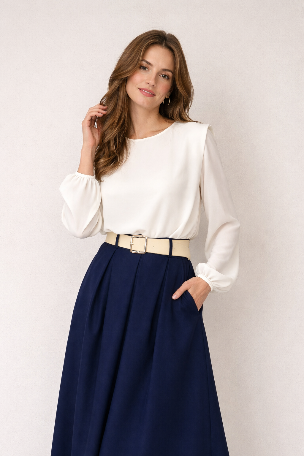 Las mangas largas con ligero volumen crean un efecto elegante y refinado, mientras que en la parte trasera incorpora un delicado cierre con botón dorado, un detalle discreto que eleva la prenda y añade un acabado premium. Este equilibrio entre sencillez y sofisticación convierte al Body Elara elegante en una pieza imprescindible para cualquier armario.