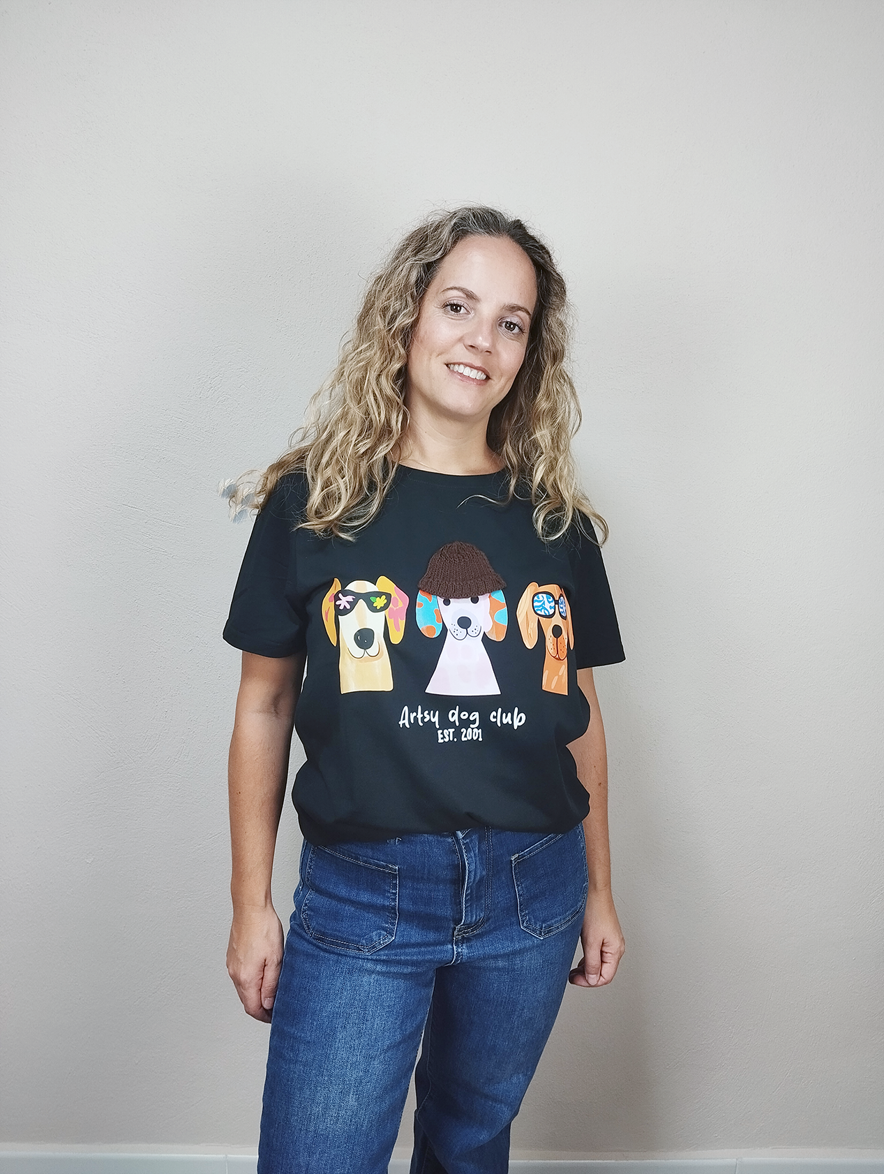 Esta camiseta no solo aporta estilo, sino también una forma de expresar tu amor por los perros y tu gusto por la moda creativa. Es una opción excelente para regalar a amigos, familiares o cualquier persona que disfrute de ropa divertida y con un toque artístico. Gracias a su diseño original, esta camiseta se convierte en un elemento destacado dentro de cualquier armario, aportando un aire desenfadado y optimista a quien la lleva.