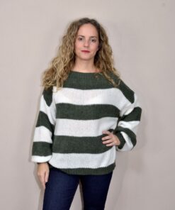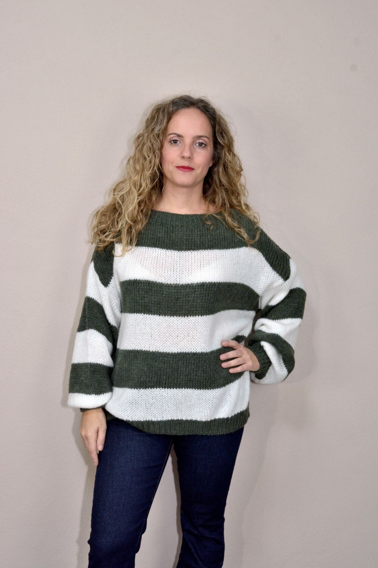 El Jersey Freya es la prenda perfecta para quienes buscan un estilo moderno, cálido y versátil durante los meses más fríos. Diseñado con un tejido suave y agradable al tacto, este jersey ofrece una combinación ideal entre comodidad y moda, convirtiéndose en un imprescindible para tu armario de otoño e invierno. Sus amplias franjas en tonos verdes y blancos aportan un toque nórdico y actual, lo que lo convierte en una pieza fácil de combinar con jeans, pantalones rectos o botas de temporada.