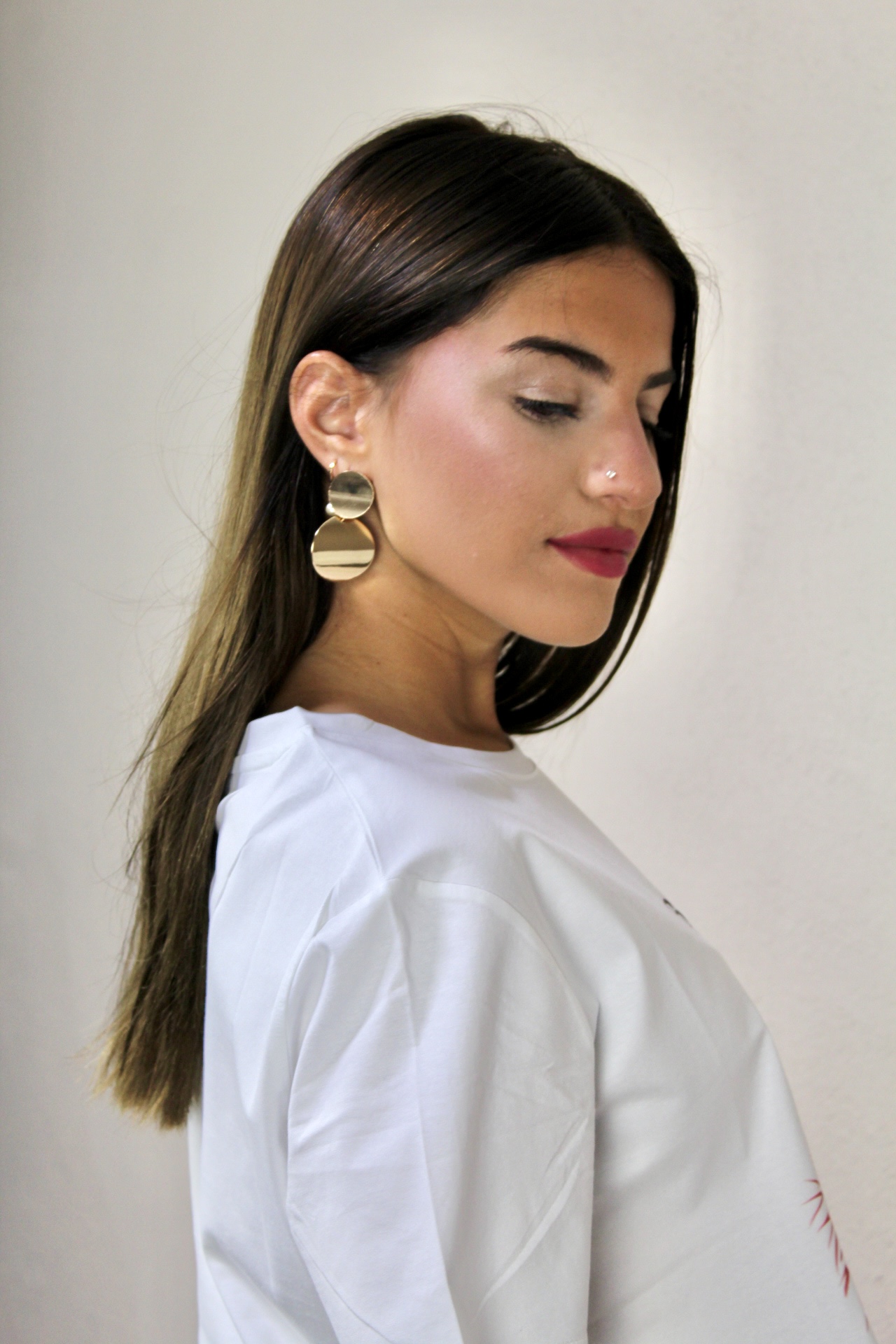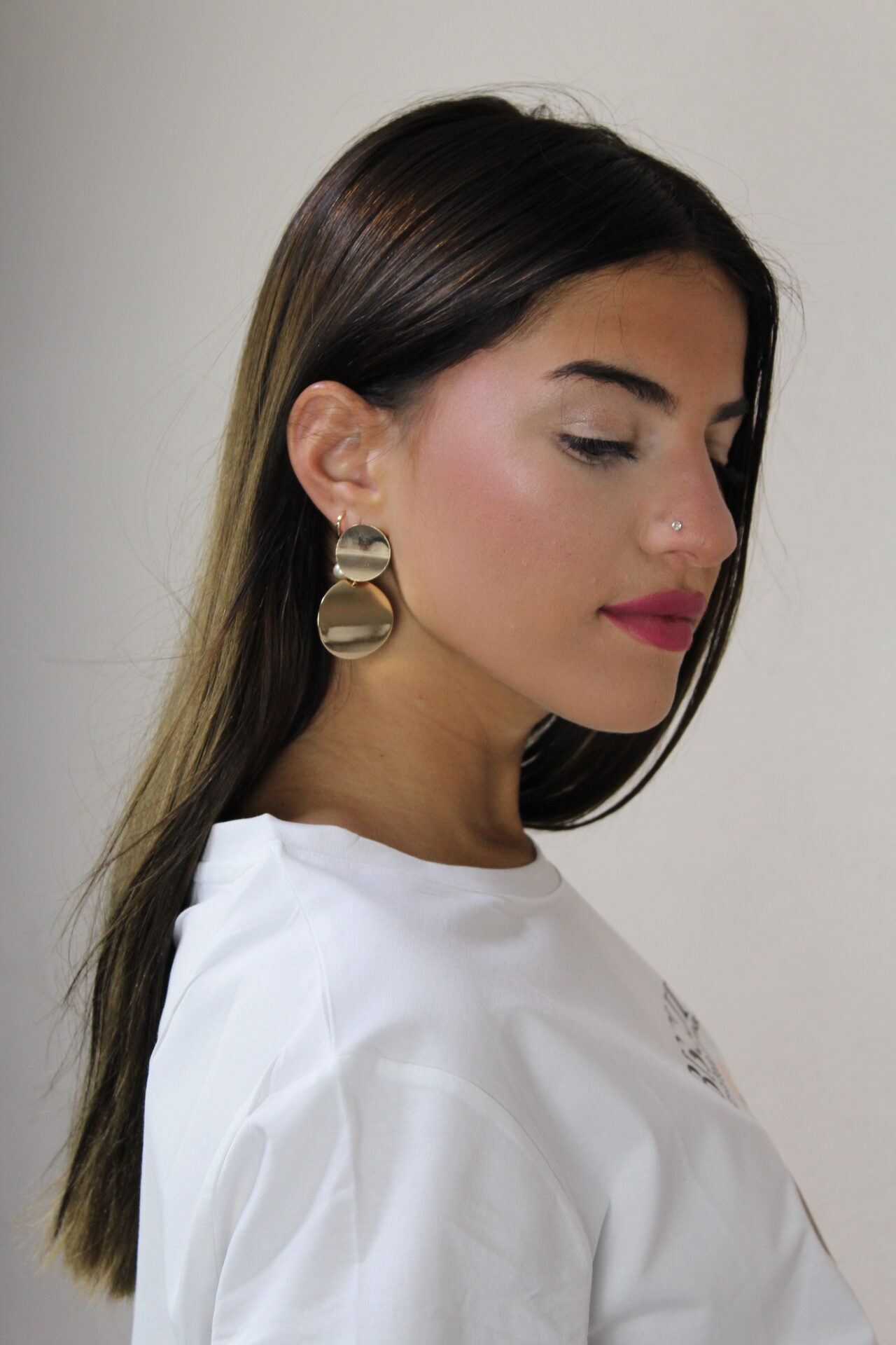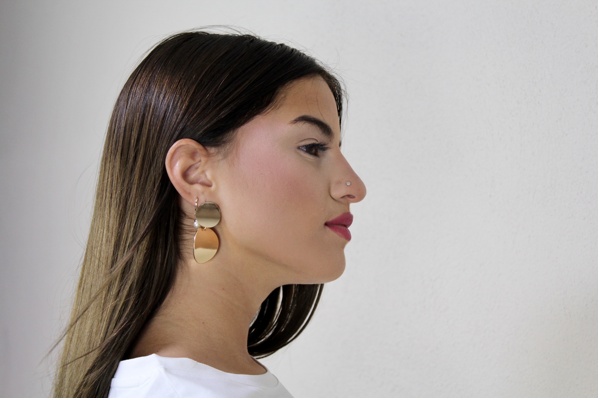 Pendiente minimalista en tono dorado, elegante y versátil, perfecto para realzar tu estilo con un brillo delicado y moderno.