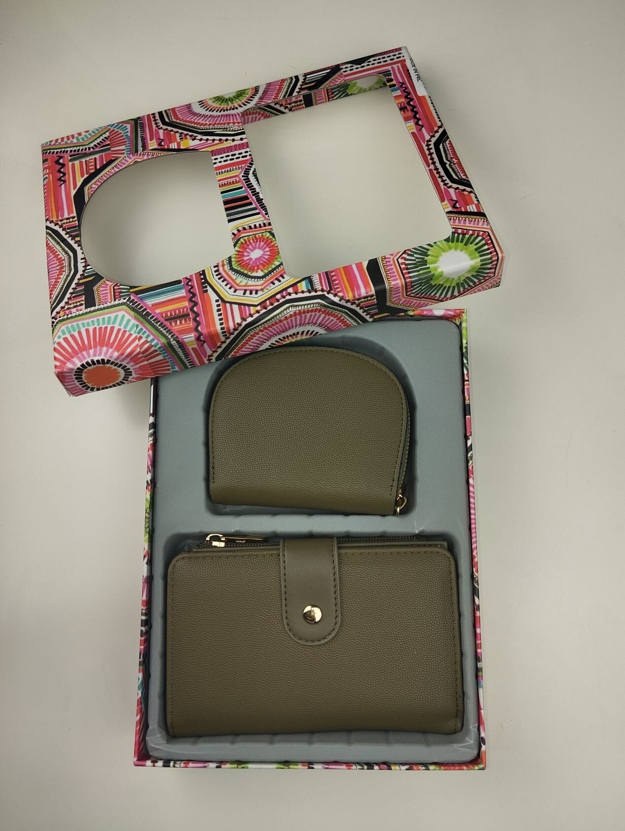 El Set de Cartera y Monedero Elegance es la combinación perfecta de estilo, funcionalidad y calidad, creado pensando en quienes buscan accesorios prácticos pero a la vez sofisticados. Este elegante conjunto incluye una cartera de gran capacidad y un monedero compacto, ambos fabricados en un material tipo cuero resistente y de textura suave que garantiza durabilidad y un acabado profesional. Su tonalidad oliva aporta un toque moderno, versátil y fácil de combinar con cualquier estilo, desde lo casual hasta lo más formal.