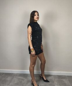 El Vestido Eclipse destaca por su diseño mini de lentejuelas, hombreras  y corte ajustado que realza la figura. Perfecto para eventos y noches especiales, combina brillo, elegancia y un estilo moderno que te hará brillar con personalidad. Una prenda imprescindible en la colección de fiesta de Ananakokoa.