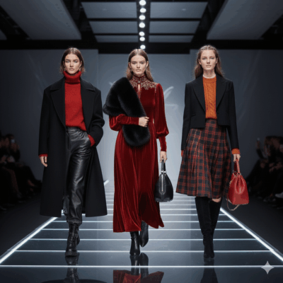 El contraste entre rojo intenso y negro profundo dominará la moda urbana este invierno. Este binomio transmite fuerza, elegancia y dramatismo visual. Se verá especialmente en: